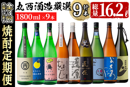 【定期便・全3回】丸西酒造厳選焼酎定期便 (計9本・各1.8L) t008-003