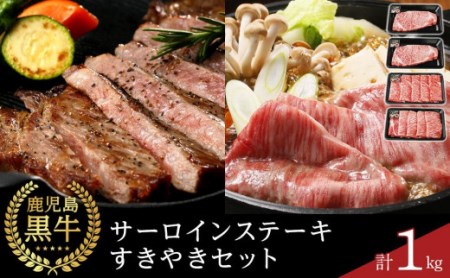 【E-301】鹿児島黒牛サーロインステーキ・すきやきセット 計1kg