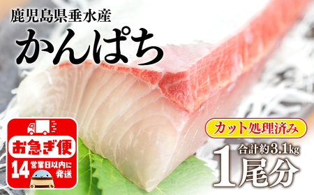 C3-6401/【鹿児島県垂水市産】カンパチ(1匹) 甘口さしみ醤油付き