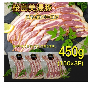 A1-0406/鹿児島県産 桜島美湯豚 ベーコンスライス 450g (150g×3パック)