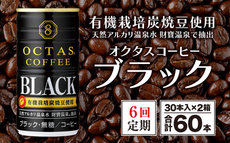 オクタスコーヒー ブラック 缶185g×30本×2箱 合計60本 【毎月1回、合計6回お届け】 【賞味期限】製造日より1年(常温) ※開封後はお早めにお召し上がりください。 【アレルゲン】なし