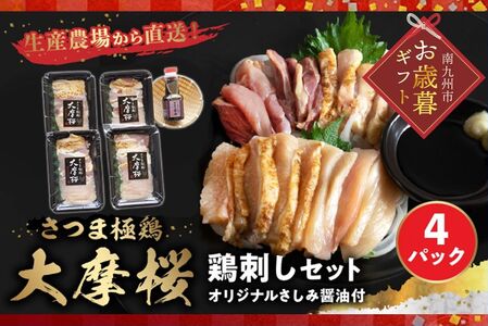 085-07-1 【お歳暮に】「さつま極鶏大摩桜」鶏刺し4パックセット