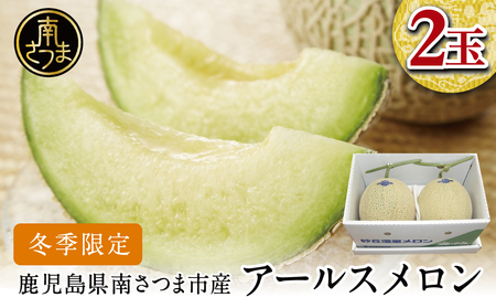 【11月末~12月中旬発送】鹿児島県産 砂丘メロン「加世田アールスメロン」2玉 化粧箱入り 果物 フルーツ JA南さつま