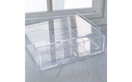 【サイズ】幅24.5cm×奥行18cm×高さ8cm 【板厚】3mm 【カラー】透明 【仕切り1マスサイズ】幅7.4cm×奥行8.3cm×高さ5.9cm 【素材】アクリル樹脂 【使用方法】 【使用方法】 直射日光を避け室内でご使用ください
