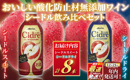 1.おいしい酸化防止剤無添加ワイン シードル スイート 缶290ml×4缶 2.おいしい酸化防止剤無添加ワイン シードル ドライ 缶290ml×4缶 計8本 ・原材料 濃縮還元りんご果汁(外国産)、りんご果汁(日本産)、糖類/炭酸、リンゴ酸