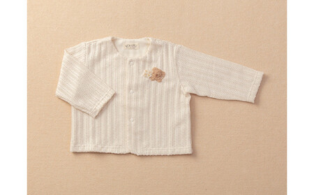 ●カーディガン:オーガニックコットン100% レーシーニット 天竺(見返し) サイズ/70-80 ●ロンパース:オーガニックコットン100% ダブルガーゼ サイズ/60-70