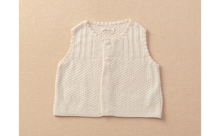 ●ニットベスト: オーガニックコットン100% オーガニック糸 編地 サイズ/80 ●ニットぼうし: オーガニックコットン100% オーガニック糸 編地 サイズ/42-46