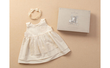 ●ドレス: オーガニックコットン100% シングルガーゼ 一部にチュールレース使用 サイズ/80 ●ヘアバンド:オーガニックコットン100%