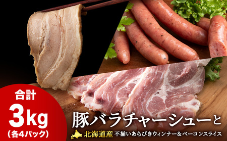 豚バラ チャーシュー ・不揃い ベーコン ・不揃い ウィンナー 各4袋 アソート3種 セット ≪ 肉の山本 ≫