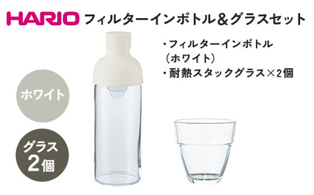 HARIO フィルターインボトル 300ml(ホワイト)&耐熱スタックグラス2個セット [FIB-30-W][HSG-1624]_DL23