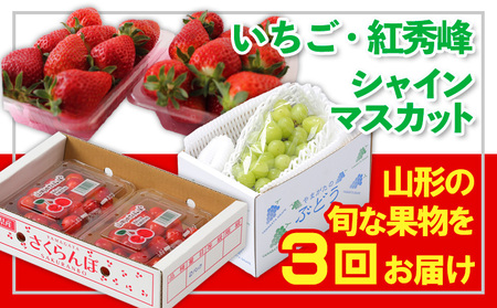 【定期便3回】☆フルーツ王国山形☆『いちご、紅秀峰、シャインマスカット』 FY25-316
