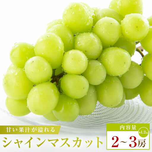 【内容量】 ・シャインマスカット:1kg(2房~3房) 【原材料】 ・シャインマスカット 【申込期間】 ~2026年9月16日まで ※お申込み状況により変更となる場合がございます。 【賞味期限】 ・発送日+4日