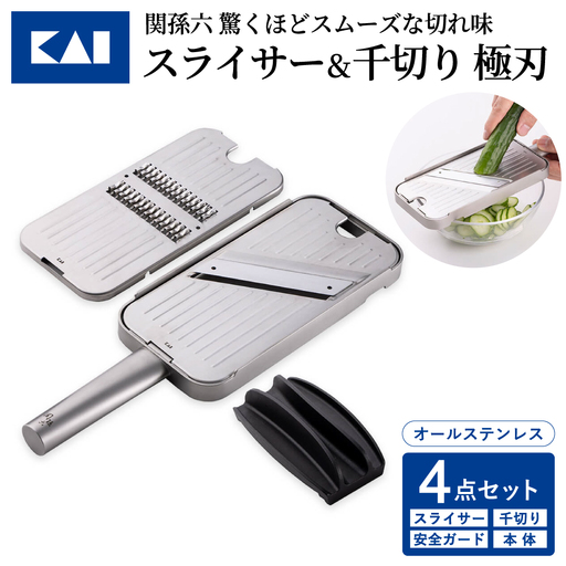 貝印 関孫六 千切り&スライサー&指ガード&本体4点セット 極刃 オールステンレス