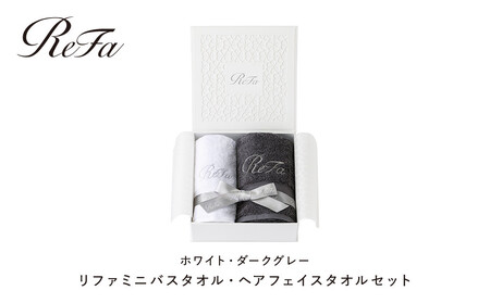 ◆リファヘアフェイスタオル カラー:ホワイト 本体サイズ:34cm×80cm 素材:綿100% ◆リファミニバスタオル カラー:ダークグレー 本体サイズ:50cm×100cm 素材:綿100%