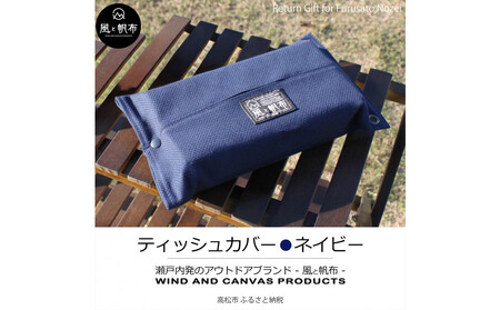 香川県産 丈夫でやさしい綿の手触り 帆布のティッシュ&ペーパータオルケース ネイビー、1点