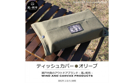 香川県産 丈夫でやさしい綿の手触り 帆布のティッシュ&ペーパータオルケース オリーブ、1点