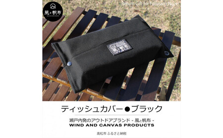 香川県産 丈夫でやさしい綿の手触り 帆布のティッシュ&ペーパータオルケース ブラック、1点