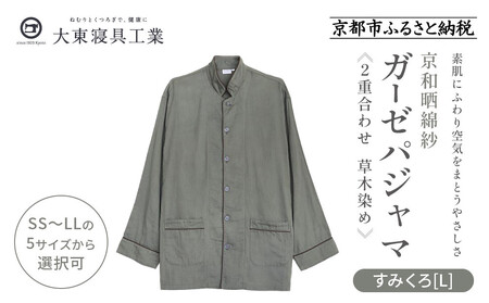 【大東寝具】京和晒綿紗 ガーゼパジャマ 2重合わせ 草木染め≪すみくろ≫ Lサイズ(男女兼用)|京都 パジャマ 人気ブランド 抜群の肌ざわり 快眠