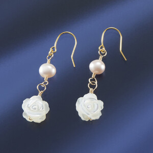 102506-1 マザーオブパール「薔薇」K14GF金張りピアス