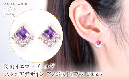K10 イエローゴールド スクエアデザイン アメジストピアス 管理番号686606 218-181-am