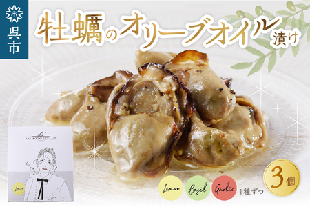沖元水産 牡蠣のオリーブオイル漬け 3個( バジル/レモン/ガーリック ) オリジナルレシピ付き おしゃれなパッケージ アヒージョ おつまみ ギフト プレゼント 広島県 呉市 ku009-008-r