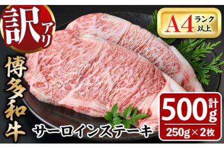 <訳あり・不揃い>博多和牛サーロインステーキセット(計500g・250g×2枚)牛肉 黒毛和牛 国産 化粧箱 贈答 ギフト プレゼント 小分け<離島配送不可>【ksg0288】【MEATPLUS】