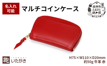 マルチコインケース レッド 革 天然 皮革 男女兼用 贈り物 ギフト プレゼント いたがき 名入れ有