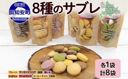 北海道 サブレ 8種 各8枚入りジップ付き 手作り クッキー 焼き菓子 詰め合わせ かわいい おやつ スイーツ プレーン ココア アーモンド 紫いも アールグレイ コーヒー チョコ くるみ 抹茶 かぼちゃ プレゼント ギフト Sugar Palette 送料無料