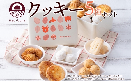 北海道 クッキー 缶 5種 詰め合わせ スイーツ 塩 バター シュガー チーズ ペッパー 酒粕 スノーボール きなこ 焼き菓子 お菓子 洋菓子おやつ おかし デザート グルメ お取り寄せ ギフト プレゼント 贈答用 ニセコ Nao-buns 送料無料 倶知安町