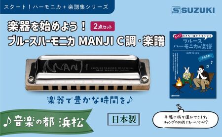 楽器を始めよう!スズキ ブルースハーモニカMANJI C調と楽譜集のセット 雑貨 日用品 音楽 吹ける プレゼント おすすめ クラシック うまくなる メロディ YouTube 音色