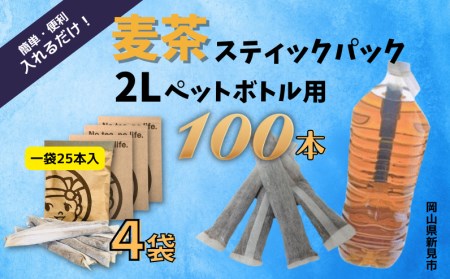2Lペットボトル用スティックパック 麦茶 100本 (15g×25本入・4袋)