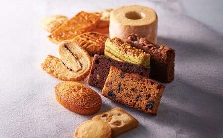 【計18個】 ・ノーテンクーヘン ピスタチオ・ショコラ:各1個 ・ガトーバスク/フリューゲルパイ セサミ:各2個 ・フロランタ /ヴィジタンティーヌ:各4個 ・ケーク・オ・フリュイ /ショコラ・オランジュ/バウムクーヘン/バターサブレ(2枚入):各1個