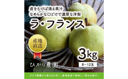 ラ・フランス 3kg 10玉~8玉 2L~4Lサイズ 秀品 ※玉数・サイズの指定はできません。 ※天候により出荷時期や規格(数、サイズ、品種等)を変更する場合がございます。