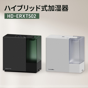 【商品内容】 ・加湿器本体/取扱説明書/交換用カンタン取替フィルター(2個入り) 【商品本体色】 2色よりお選びください。 ・0H56330 HD-ERXT502(K) チャコールブラック ・0H56310 HD-ERXT502(S) アッシュグレー 【商品仕様】 ・最大加湿量:500mL/h ・適用床面積:プレハブ洋室14畳(23平方メートル)まで、木造和室8.5畳(14平方メートル)まで ・タンク容量:5.0L ・連続加湿時間:10.0~13.5h ・本体外形寸法:高さ375×幅375×奥行175mm ・本体質量:約4.6kg