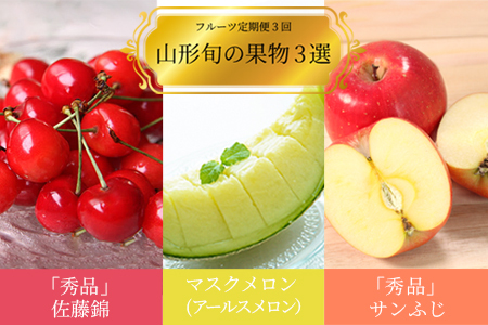 【2026年発送】【定期便3回】山形旬の果物3選(佐藤錦/メロン/りんご)_H185(R8)
