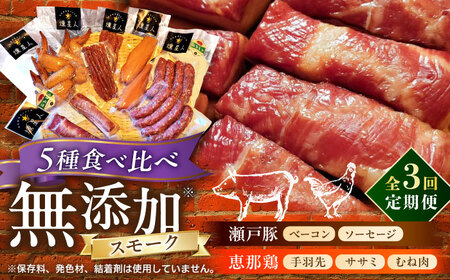 【全3回定期便】無添加燻製セットC 5種セット / ベーコン ソーセージ 手羽先 ササミ むね肉 / 瀬戸市 /天佑[BBBZ032]