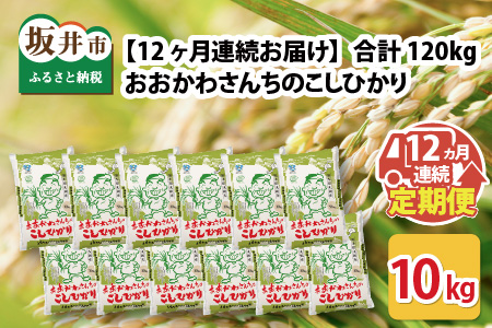 【令和7年産】 【12ヶ月連続お届け定期便】おおかわさんちのコシヒカリ 10kg × 12回 [P-10801]