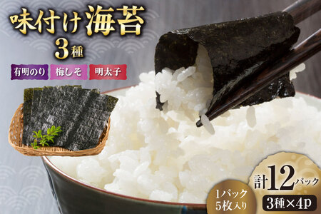 味付け海苔 3種 セット 有明のり 梅しそ 明太子 8切 5枚入り 各4パック 計 12パック [木村食品 福岡県 筑紫野市 21761087]