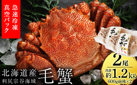 北海道 利尻・宗谷産 毛ガニ 中サイズ(600g前後)2尾セット<利尻漁業協同組合>