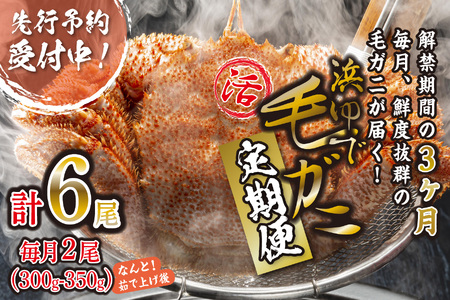 <2026年2月上旬から順次発送> 毛ガニ 定期便 全3回 北海道産 浜ゆで 毎月 2尾 (計6尾)<先行受付>