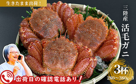 fn-40-003【出荷前にお電話します!】 活毛ガニ 3杯 (280~380g×3) 三陸産【令和8年2月上旬~4月頃お届け】ヤマコー片桐鮮魚店