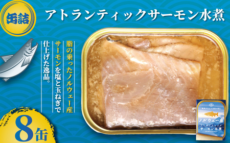 【名称】 サーモン水煮 【容量】 8缶(1缶あたり90g) 【原材料名】 アトランティックサーモン(ノルウェー産)、玉葱、食塩 【消費期限】 製造日より3年。開缶後はお早めにお召し上がりください。 【栄養成分表示】 <1缶当り・液汁を含む> エネルギー 229kcal たんぱく質 10.2 g 脂質 20.9 g 炭水化物 0.1 g 食塩相当量 1.1 g (この表示値は、目安です。) 【アレルギー品目】 さけ(鮭)