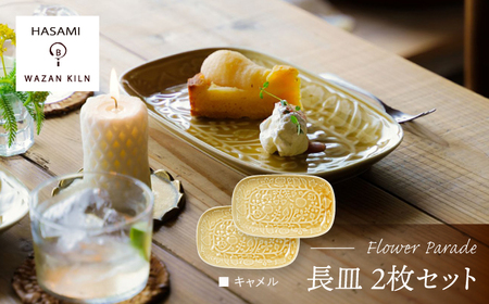 【波佐見焼】長皿 レリーフ・フラワーパレード キャメル 2枚 セット【和山】[WB185]