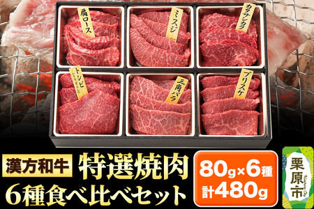 漢方和牛特選焼肉食べ比べセット 80g×6種 計480g 【肩ロース、ミスジ、カタサンカク、トンビ、三角バラ、ブリスケ】牛肉 焼き肉