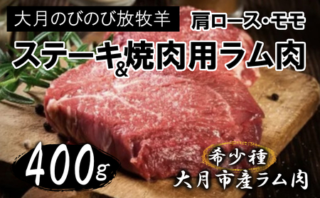 【先行予約】大月のびのび放牧羊【ステーキ&焼肉用ラム肉】400g(肩ロース200g モモ200g)