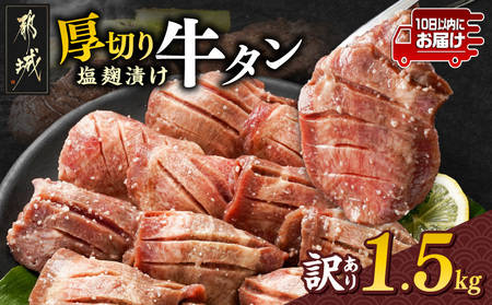 《訳あり》厚切り牛タン塩麹漬け1.5kg≪みやこんじょ特急便≫_19-3301-Q_(都城市) 約6mmスライス スリット加工 真空パック 牛肉 焼肉