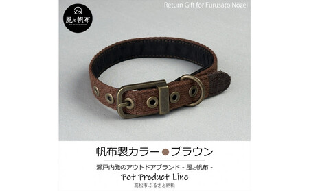 香川県産 丈夫でやさしい綿帆布ドッグカラー 天然コットンの犬用首輪 Sサイズ、ブラウン、1点