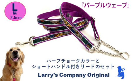 【大型犬用・Lサイズ】 ハーフチョークカラーとリードのセット(パープルウェーブ)