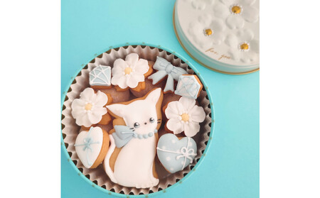 猫のブーケ缶 総個数:16枚(アイシングクッキー9枚、スノーボール7個) 缶のサイズ:104Φ×37(mm) 原材料:小麦粉(国産)、米粉、バター、グラニュー糖、アーモンドパウダー、くるみ、オリゴ糖、卵、コーンスターチ、乾燥卵白、レモン果汁/竹炭パウダー、クチナシ色素、香料、pH調整剤 製造者:fufu_cookies 大阪府堺市北区金岡町2564-4 加工者:川本真弓 食品の梱包方法:透明袋にお入れしリボンを付けたラッピングになります 【賞味期限】 製造日から30日間 ◆直射日光、高温多湿を避けてなるべく涼しい場所で保管してください。 開封後はお早めにお召し上がりください。 【アレルギー】 小麦、卵、乳、くるみ、アーモンド ※ 表示内容に関しては各事業者の指定に基づき掲載しており、一切の内容を保証するものではございません。 ※ご不明の点がございましたら事業者まで直接お問い合わせ下さい。