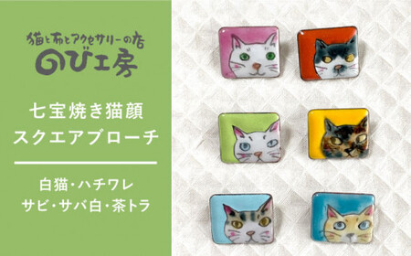 七宝焼き 猫顔 スクエア ブローチ 糸島市 / のび工房【いとしまごころ】[ADZ007]